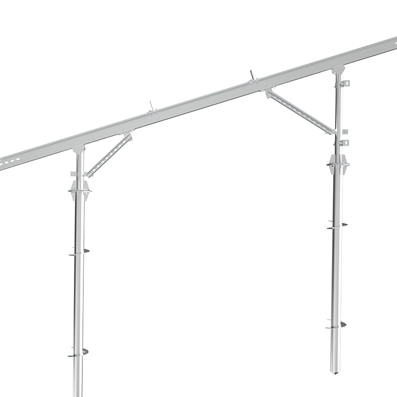 Pemasangan PV Hibrida Pertanian-Solar adalah sistem pendukung yang dirancang untuk skenario kolaboratif "penanaman pertanian pembangkit listrik fotovoltaik". Ini mengadopsi struktur tanah tinggi (biasanya 2,5-4 meter) untuk memastikan bahwa tanaman di bawahnya cukup terang dan mesin pertanian dapat lewat tanpa hambatan. Badan utama braket terbuat dari baja galvanis hot-dip atau paduan aluminium, yang tahan korosi dan memiliki kapasitas penahan beban yang kuat. Ini dipasang secara stabil melalui tumpukan pra-terkubur atau fondasi tumpukan spiral, dan cocok untuk berbagai medan seperti tanah pertanian datar dan tanah miring. Desain memperhitungkan optimalisasi sudut kemiringan komponen dan keseimbangan transmitansi cahaya. Sistem ini mewujudkan "satu tanah, dua kegunaan", yang tidak hanya meningkatkan tingkat pemanfaatan lahan yang komprehensif, tetapi juga membantu transformasi pertanian rendah karbon. Ini cocok untuk proyek terintegrasi pertanian-fotovoltaik seperti sayuran dan penanaman buah dan rumah kaca, dan memperhitungkan pendapatan pembangkit listrik dan pengembangan pertanian berkelanjutan.